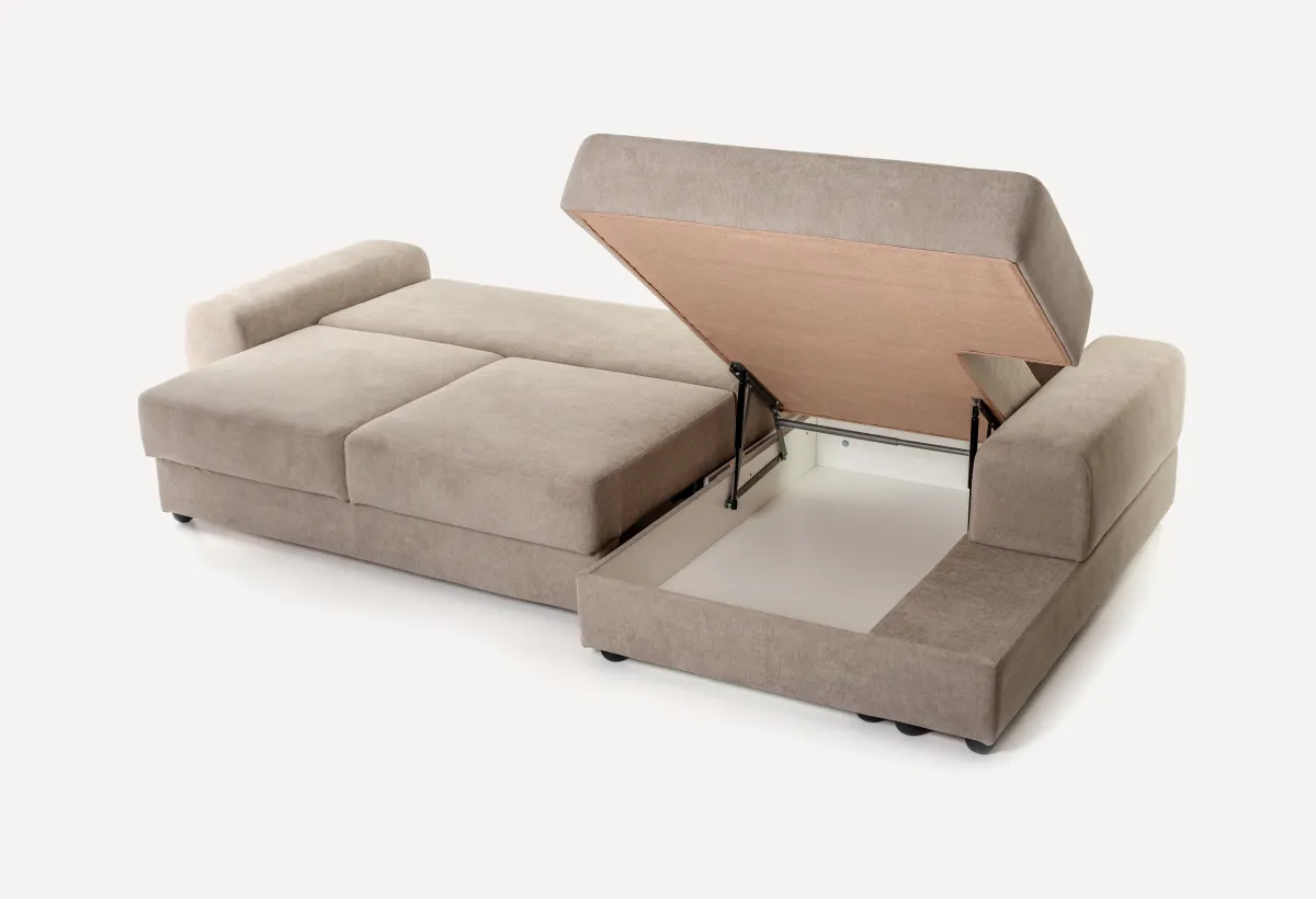 Что представляет модульный диван АндрэаДиван Андрэа — это модульная система, которую вы собираете под себя. Хотите компактный прямой диван? Пожалуйста. Нужна большая угловая конструкция с местом для хранения? Тоже без проблем. Внешне — строгий минимализм. Никаких завитушек и лишнего декора, только прямые линии и простая геометрия. Благодаря этому он одинаково хорошо смотрится в современной гостиной, квартире-студии или даже спальне. Добавьте сюда детали из скандинавского стиля и лофта — получится мебель, которая не будет спорить с интерьером, а станет его аккуратной частью. Внутри — добротный каркас из ДСП и фанеры, пружинный блок «змейка» и многослойный поролон (жесткий, плотный, сверху — лотекс и холкон). То есть диван рассчитан на ежедневную нагрузку. Производитель заявляет до 110 кг на одно посадочное место и 140 кг на спальное. В общем, сделано на совесть. Соединяются модули между собой обычными болтами — ничего не будет разъезжаться.
