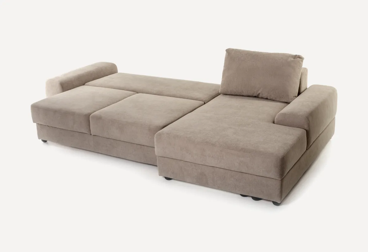 Диван средний (без подлокотника)Самый ходовой модуль. У него уже есть механизм трансформации — пантограф. Это значит, что спальное место выдвигается легко, без лишних усилий. Внутри — ящик для белья. Ставится в центр композиции.