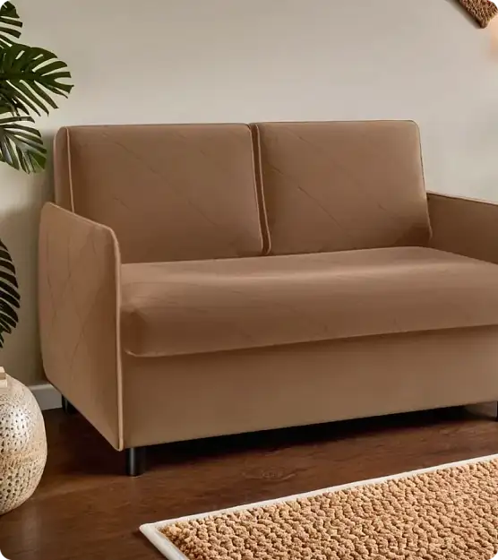 - Компактность: Изящный тонкий подлокотник не занимает лишнее пространство, делая диван идеальным для небольших комнат.