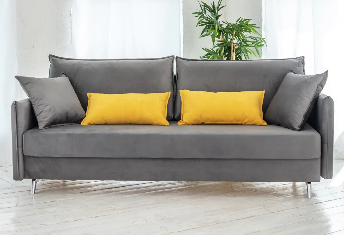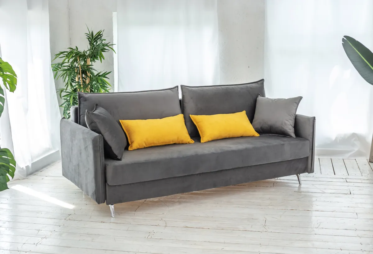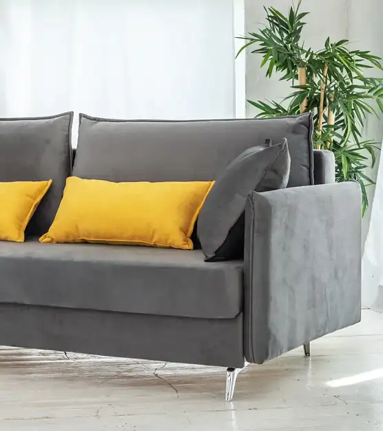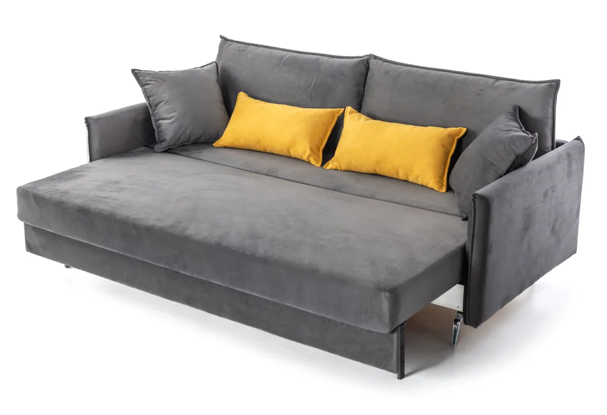 Механизм трансформации легко раскладывается благодаря металлическому синхронизатору, предотвращающему перекосы. Вместительный короб для белья и металлическая хромированная опора с просветом 120мм дополняют функциональность дивана, делая его идеальным выбором для современного дома.
