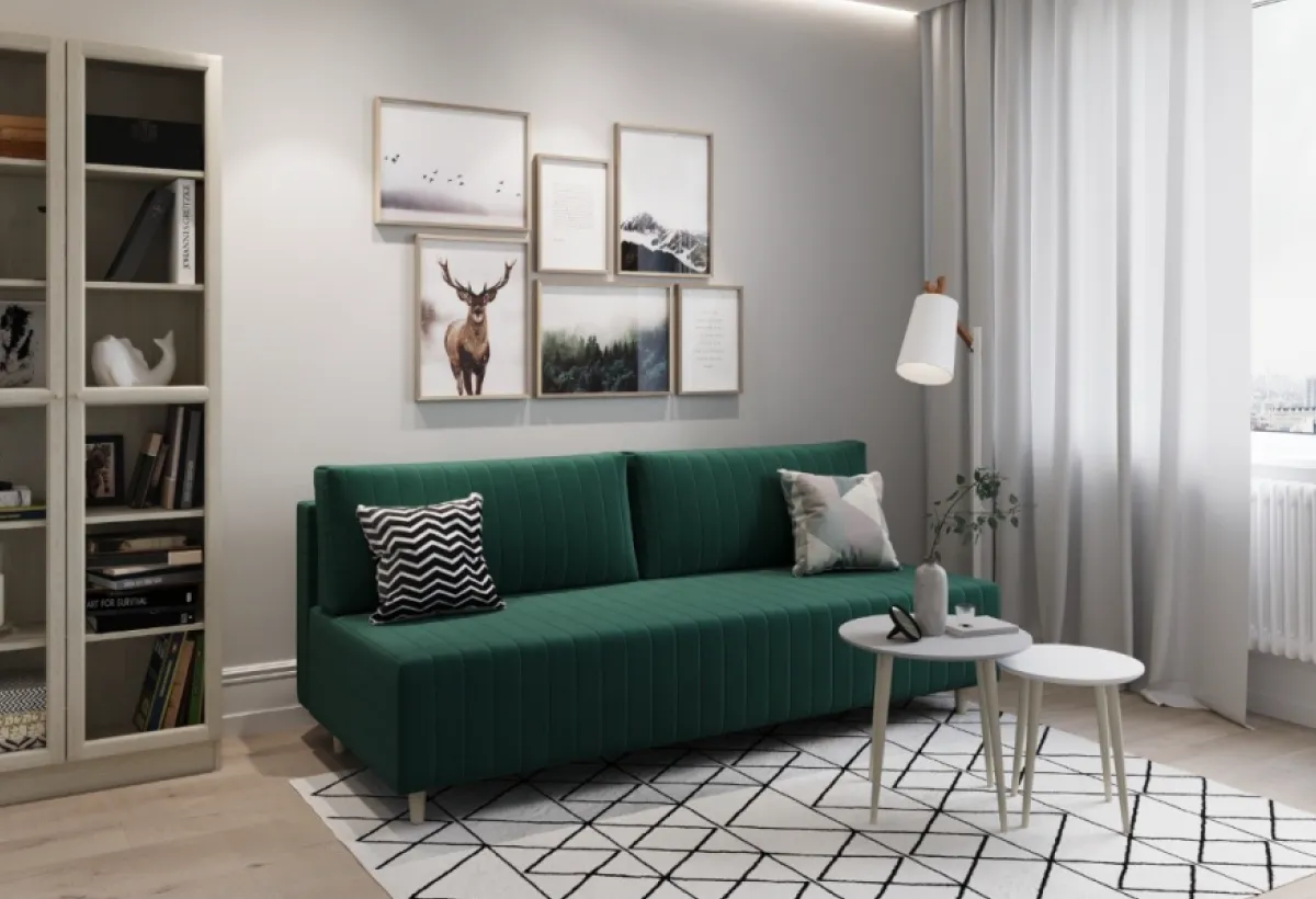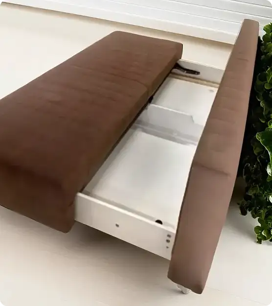 - Отсутствие подлокотников делает диван компактным