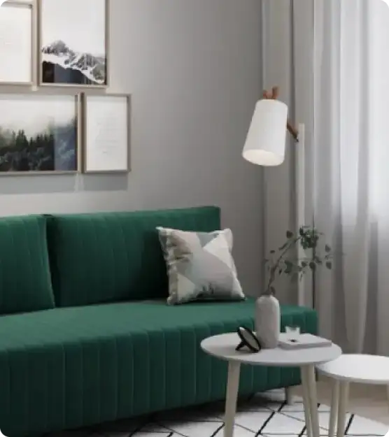 - Металлическая хромированная опора – просвет над полом 120 мм – свободно проходит робот пылесос. Опора выглядит современно, придает особый стиль дивану.