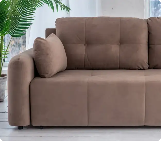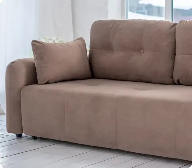 Особенности диванаВ комплекте с диваном Stone идут две подушки с наполнителем из крошки ППУ, которая не вызывает аллергии и хорошо сохраняет форму. Съемные чехлы на подушках позволяют легко ухаживать за ними, поддерживая чистоту и свежесть. Задний упор служит дополнительной фиксацией подлокотников, обеспечивая стабильность и надежность конструкции.