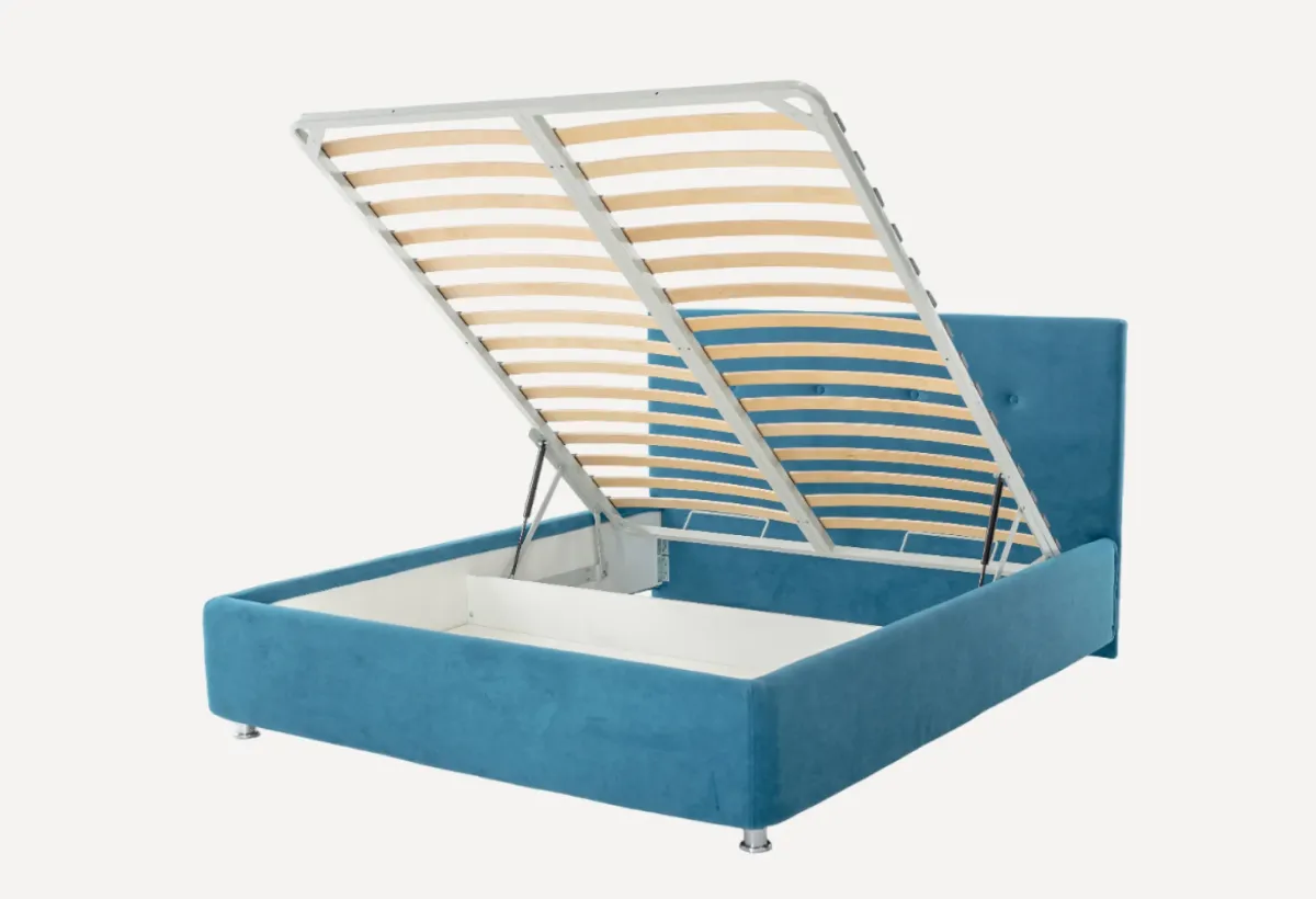 Корпус кровати изготовлен из высококачественного ДСП, все соединения — болтовые, а крепления — на металлических уголках, которые придают конструкции кровати дополнительную жёсткость и надёжность. К корпусу надёжно крепится ортопедическая решётка с подъёмным механизмом, под решётку — установлен вместительный короб для хранения, уменьшенный в размерах для максимальной функциональности.