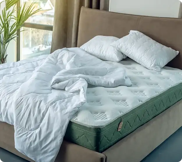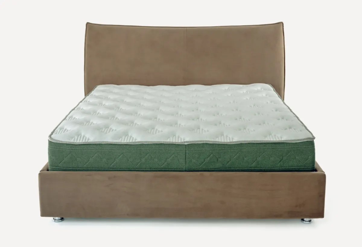 Особенности кроватиКровать сочетает в себе современный стиль и продуманные детали, создавая гармоничное сочетание комфорта и эстетики. Изголовье в форме "подушки" с плавными изгибами и акцентными уголками придает кровати уникальный и изящный вид. Деликатный кант подчеркивает изящные формы изголовья, а декоративная строчка по центру повторяет его объем, добавляя визуальной привлекательности. Все соединения выполнены с использованием болтов, что обеспечивает надежность и долговечность конструкции. Металлические опоры с покрытием "черный муар" и высотой 60 мм придают кровати устойчивость и стильный вид.