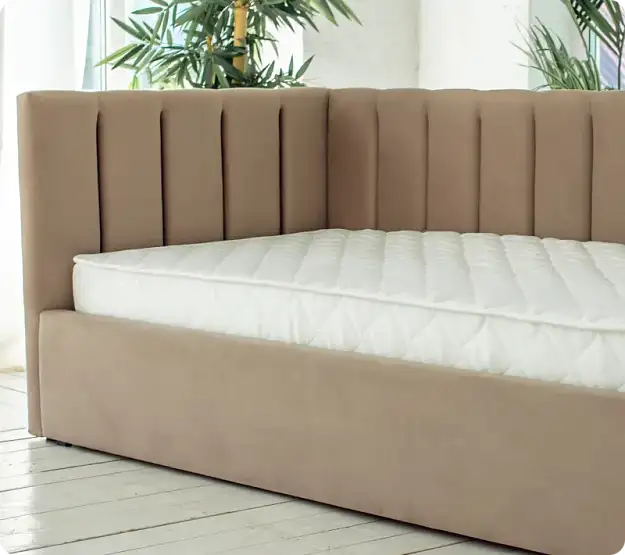 Основные особенности кровати:Спальное место: 90×200 см — оптимальный размер, подходящий как для детей, так и для подростков. Подъемный механизм: В комплекте идёт удобный механизм, который позволяет легко приподнимать спальное место, открывая доступ к просторному отсеку для хранения. Там можно разместить постельное бельё, одеяла, подушки или любимые игрушки, что поможет поддерживать порядок в комнате. Материал обивки: Возможность выбора ткани — Рогожка или Велюр. Оба варианта отличаются практичностью, износостойкостью и приятной текстурой. Универсальный дизайн: Кровать подойдёт как для мальчиков, так и для девочек, а широкий выбор цветов обивки позволит подобрать идеальный оттенок под любой стиль и предпочтения ребёнка.