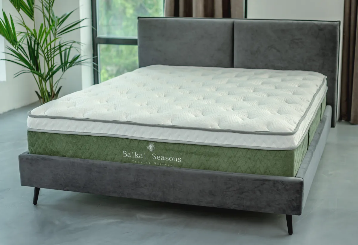 Особенности серии матрасов Baikal SeasonСерия Baikal Season – это воплощение величия природы Байкала в мире сна. Четыре матраса – Лето, Зима, Осень и Весна – созданы для тех, кто ценит не только безупречный комфорт, но и эстетику. В дизайне сочетаются изысканная неоклассика и природные мотивы: пышная тайга, горные силуэты и мягкие отпечатки кедровых ветвей на трикотажном чехле. Основа матрасов – уникальная пружинная система IRKUT, символ силы и энергии. 1012 независимых пружин на спальное место обеспечивают идеальную поддержку, а сверхжесткий короб из пены HL4065 гарантирует долговечность даже при экстремальных нагрузках. Технология Cloud в чехле создает эффект воздушной мягкости, хотя сам матрас обладает выраженной жесткостью – для здоровья позвоночника и комфортного сна.