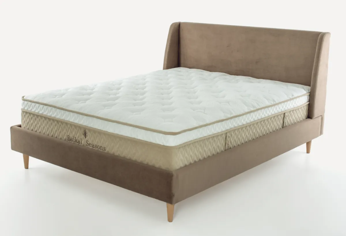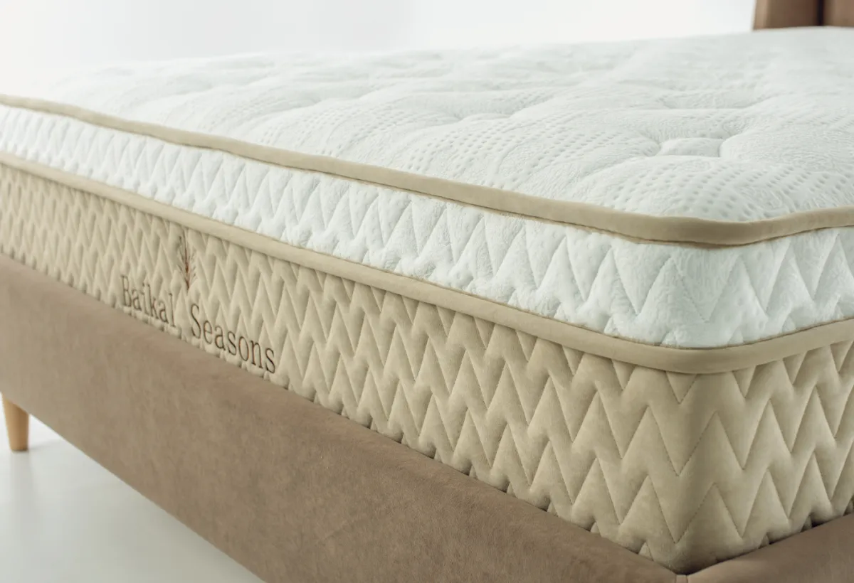 Особенности серии матрасов Baikal SeasonВдохновитесь атмосферой золотой осени на Байкале с матрасом Baikal Season Осень – идеальным сочетанием ортопедической поддержки и мягкого комфорта. Этот матрас создан для тех, кто ценит баланс между жесткостью и нежностью, как переход от теплого лета к прохладной осени. Дизайн и эстетика Серия Baikal Season – это дань величию Байкала, воплощенная в дизайне. Неоклассические мотивы, переплетающиеся с природными элементами – тайгой, горными силуэтами и отпечатками кедровых ветвей – создают уникальную атмосферу в вашей спальне. Чехол из дизайнерского трикотажа с технологией Cloud и ткани жаккард подчеркивает изысканность и натуральность коллекции.