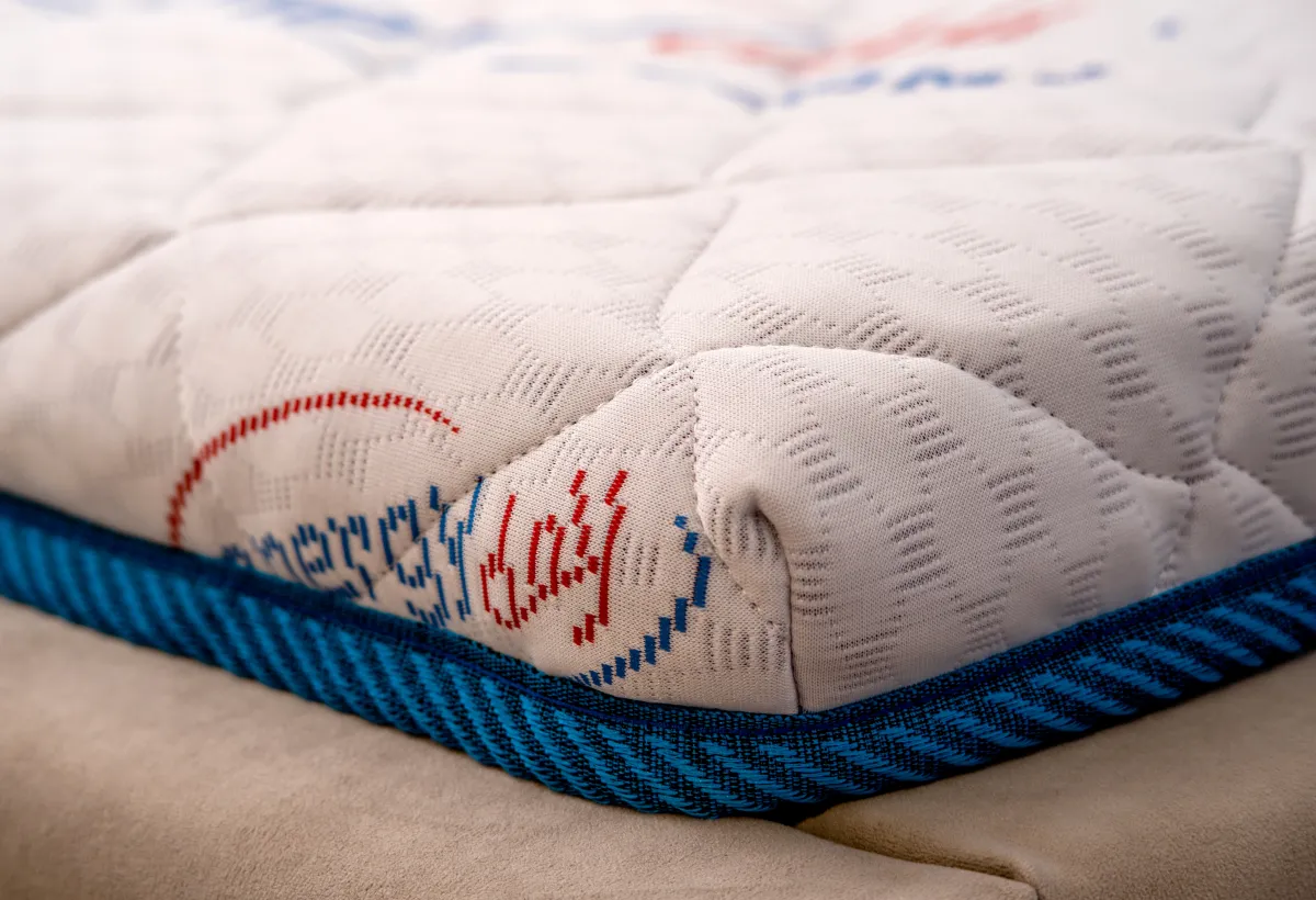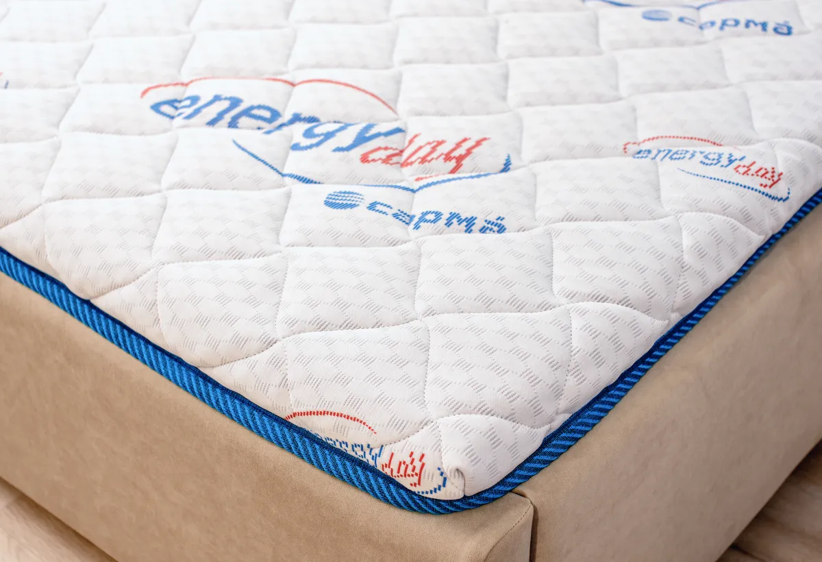 Стильный и функциональный дизайнПредставляем вам новый матрас, который сочетает в себе стиль и функциональность. Его уникальный чехол, выполненный из трикотажа Energy Day, стеганого на объемном синтепоне, и жаккардовой рогожки голубого цвета, придает матрасу эстетичный вид и обеспечивает долговечность. Такое сочетание материалов делает его идеальным дополнением к любому интерьеру.